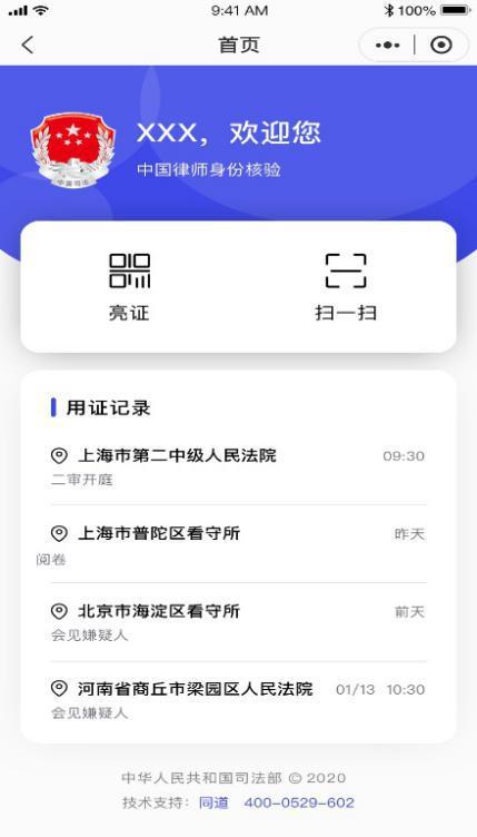 9月9日,司法部發布的“中國律師身份核驗平臺”正式上線試運行,在最高人民法院的支持與配合下,提倡律師更方便參與訴訟活動而設立。使用規則也非常簡單,律師只需要在微信小程序中搜索“中國律師身份核驗”,通過人臉識別進行驗證審核身份后,即可使用“亮證”和“掃一掃”功能。